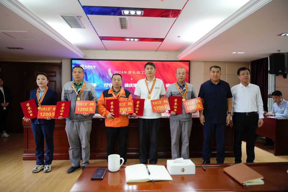 ▲區(qū)總工會(huì)黨組書記、常務(wù)副主席羅佃華,長(zhǎng)田實(shí)業(yè)董事長(zhǎng)張勇為2024年度“長(zhǎng)田工匠”頒發(fā)獎(jiǎng)?wù)?、榮譽(yù)證書