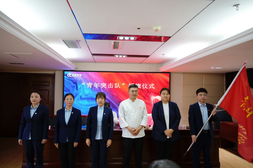 ▲長(zhǎng)田實(shí)業(yè)團(tuán)委書記張曉彤為青年突擊隊(duì)授旗