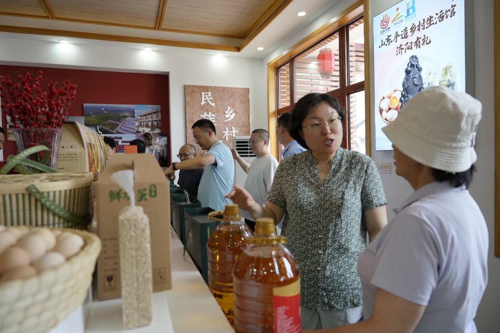 考察團一行實地參觀了長田實業(yè)在濟陽街道董家村的產(chǎn)業(yè)布局和相關配套設施建設。首先參觀的是易豐居,室內(nèi)的農(nóng)產(chǎn)品展示臺上擺放著自種自養(yǎng)自產(chǎn)的各類生態(tài)產(chǎn)品,工作人員向大家詳細介紹了農(nóng)產(chǎn)品的來源及銷售情況。