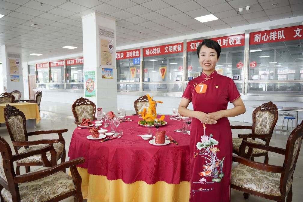 在餐廳服務(wù)員的比賽中,長田餐飲團(tuán)隊(duì)所呈現(xiàn)的中餐宴會(huì)擺臺(tái)技藝卓越,創(chuàng)意層出不窮。其精心設(shè)計(jì)的龍鳳呈祥宴、聞韶養(yǎng)生宴、五谷豐登宴、福如東海宴、泉城人家宴、金榜題名宴等主題,借助桌布、餐具與臺(tái)面裝飾的巧妙搭配,生動(dòng)地呈現(xiàn)在每一張餐桌上。選手們優(yōu)雅的姿態(tài)、專業(yè)的操作手法和精美的臺(tái)面設(shè)計(jì),不僅為賽事帶來了一場視覺藝術(shù)的盛宴,更深刻地展示了中餐文化的博大精深與獨(dú)特魅力。