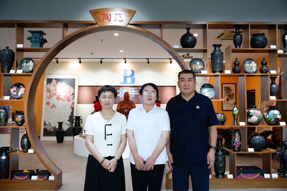 在山東手造濟北展示體驗中心,調研組被濟陽地區(qū)各種優(yōu)秀傳統(tǒng)手工技藝作品深深吸引,對濟北手造的文創(chuàng)產品及陳列布局表示了高度認可。馬局長講到,濟北手造展示體驗中心展品品類豐富,各具特色,這些手工藝品不僅技藝精湛,更蘊含了豐富的文化底蘊和時代精神,體現(xiàn)了當?shù)亟橙藗儗鹘y(tǒng)技藝的堅守與創(chuàng)新,要以堅定不移的信念傳承下去,因為只有傳承,才能真正實現(xiàn)非物質文化遺產的保護和發(fā)展,才能讓它們留下來、活起來、傳開來。她表示,非遺文化傳承關鍵在人,還要有一定的展示空間可以對外展示。張總作為民營企業(yè)家積極踐行新時代企業(yè)家精神,打造了濟北手造展示體驗中心,助力傳統(tǒng)老手藝在新時代綻放新光彩。還通過非遺文化產業(yè)助力鄉(xiāng)村振興,凝心聚力、回報社會,彰顯著新時代企業(yè)家的擔當和情懷。馬局長進一步補充道,廣河縣自然景觀資源豐富,文化底蘊深厚,發(fā)展?jié)摿Υ?,應從進一步挖掘地域特色,鼓勵更多的本土企業(yè)家投身于非遺文化傳承,促進文化旅游產業(yè)的深度融合,將傳統(tǒng)手工藝與自然景觀相結合,打造本地特色文化屬性、加大宣傳推廣力度、拓展產品銷售渠道等方面發(fā)力,推動廣河文旅發(fā)展更上新臺階。