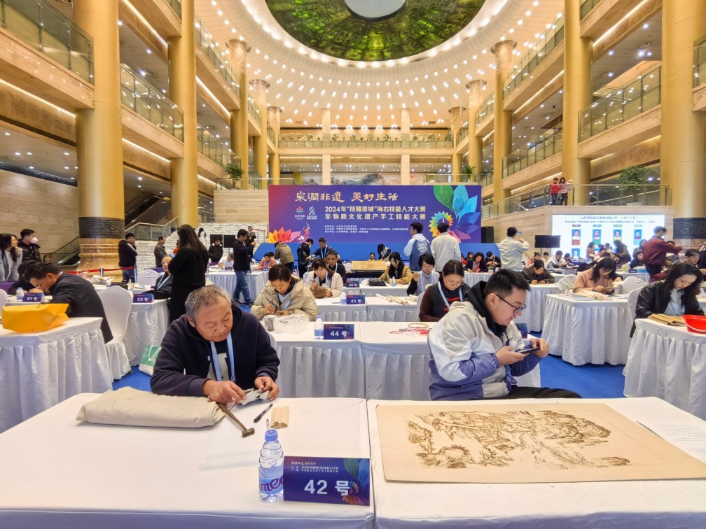 2024年10月19日—20日,由山東省文化和旅游廳指導(dǎo),濟(jì)南市文化和旅游局、濟(jì)南市人力資源和社會(huì)保障局、共青團(tuán)濟(jì)南市委主辦,山東博物館、新黃河 ? 濟(jì)南時(shí)報(bào)承辦,第八屆中國(guó)非物質(zhì)文化遺產(chǎn)博覽會(huì)2024年“技耀泉城”海右技能人才大賽——非物質(zhì)文化遺產(chǎn)手工技能大賽在山東博物館成功舉辦。20日,龍格黑陶工作人員高立香、王建參與賽事。
