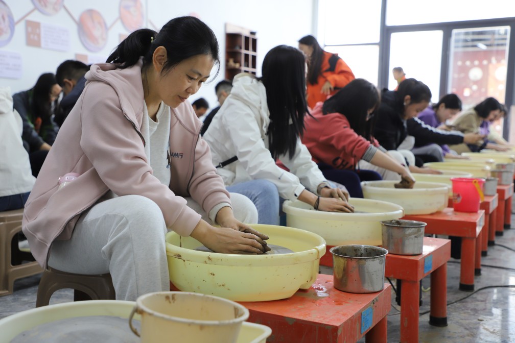 隨后,在省級非物質(zhì)文化遺產(chǎn)項目濟陽黑陶制作技藝代表性傳承人徐慶增老師的指導(dǎo)下,學員們親自體驗了黑陶制作過程,他們學習了基本技藝——拉坯,親手制作出屬于自己的黑陶作品。通過這次體驗,學員們不僅對非遺文化有了更深刻的認識,也更加珍惜和尊重傳統(tǒng)手工藝。