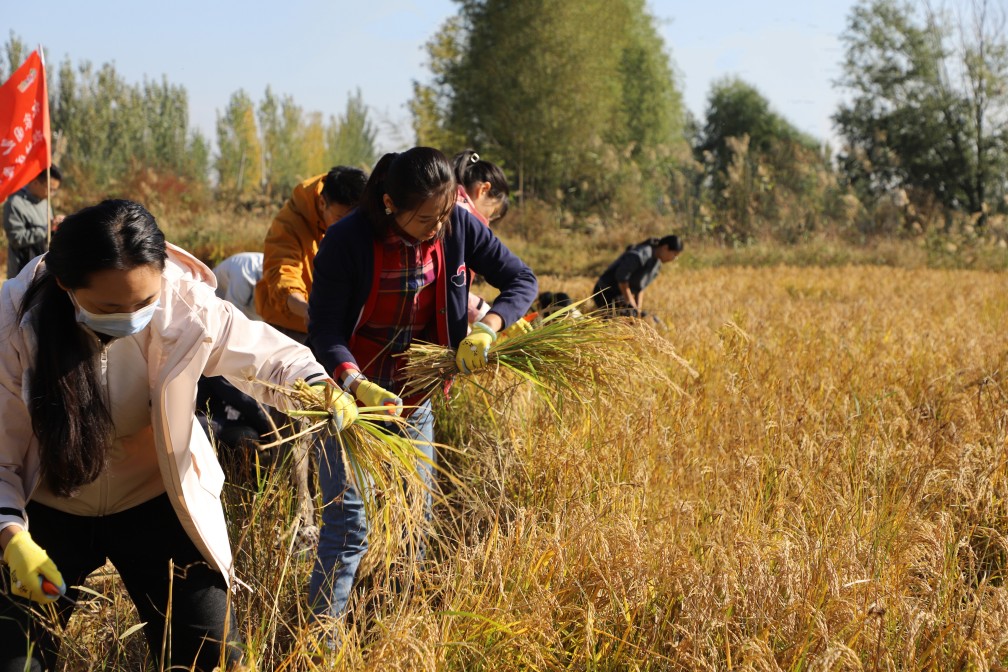 隨后,大家轉(zhuǎn)戰(zhàn)稻田,感悟“金秋”豐碩的“勞動精神”,在稻谷飄香中摘取“為民”的碩果。割水稻是一項技術(shù)活,需要彎腰、揮刀、捆扎,每一個步驟都不能馬虎。盡管腰酸背痛,但大家依然咬牙堅持,沒有一人退縮。在勞動中,大家深刻體會到了農(nóng)民的不易,也更加堅定了為鄉(xiāng)村振興貢獻力量的決心。