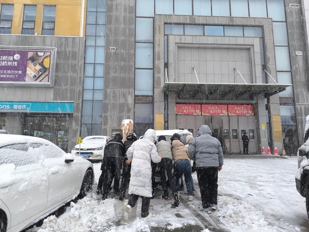 華百電影文化廣場(chǎng)外,大雪依舊飄飄灑灑、尚未停歇的時(shí)候,華百商管和物業(yè)人員就已經(jīng)踏上了清掃積雪的征程。在掃雪過(guò)程中,偶遇因積雪厚重而無(wú)法前行的車(chē)輛,他們毫不猶豫地放下手中的工具,匯聚成一股強(qiáng)大的合力,齊心協(xié)力推車(chē)前行,一邊精準(zhǔn)指揮車(chē)輛,一邊奮力推動(dòng),最終成功助力車(chē)輛脫困。為防止影響車(chē)牌的錄入,物業(yè)人不懼寒冷,徒手將一個(gè)個(gè)車(chē)牌上的積雪清除,這一暖心之舉,不僅贏得了車(chē)主由衷的感激,更讓市民深切感受到了長(zhǎng)田人的溫暖與力量。