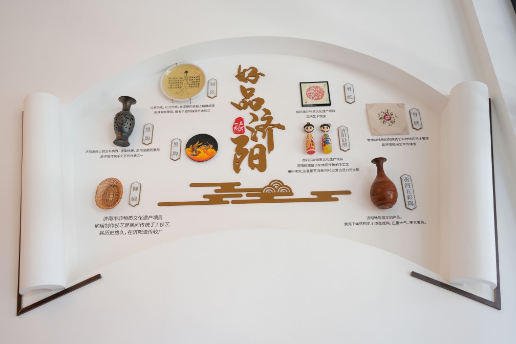 獨具匠心之處在于,一品黃河20個包間以黃河所流經(jīng)的九個省份和進(jìn)入山東省后所流經(jīng)的九個市的名稱命名,房間內(nèi)軟裝如掛畫等體現(xiàn)沿黃省份、城市的文化特征,并通過桌卡形式全面呈現(xiàn)文化內(nèi)涵,將黃河文化具象為沉浸式餐飲體驗。比如山東廳懸掛的是山東具有代表性的非遺文化代表作--魯錦,魯錦的每一梭都是對自然的敬畏,每一紋都是對生活的期許;黃河源頭青海廳懸掛的是青海省具有代表性的非遺文化代表作熱貢唐卡;四川廳懸掛的是四川具有代表性的非遺文化代表作蜀繡做成的熊貓壁畫;有“天下黃河富寧夏”之說的寧夏廳,懸掛的是寧夏最具代表性的非遺文化產(chǎn)品回民剪紙等等。讓每一餐都成為一場文化之旅。