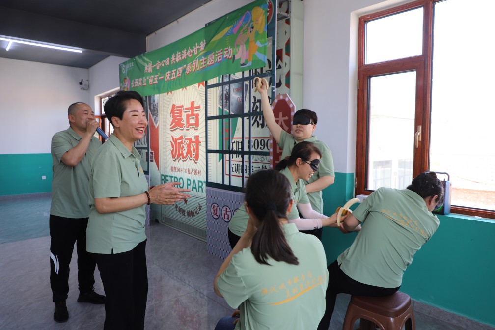 餐中設(shè)置的游戲環(huán)節(jié)更是激起了大家的參與熱情,笑聲和歡呼聲此起彼伏。“蒙眼吃香蕉”簡直就是歡樂的源泉!參與者兩兩一組,參與者戴上眼罩原地轉(zhuǎn)圈后迷失了方向,雙手小心翼翼地握著香蕉,一會兒往左偏,一會兒往右拐,那手忙腳亂的樣子,真是讓人忍俊不禁,坐著等待的同伴更是“心焦”,恨不得通過聲音指引隊友。有的摸索著找到隊友的嘴巴,有的卻誤打誤撞地碰到了隊友的鼻子,有的甚至直接越過隊友……現(xiàn)場爆發(fā)出一陣陣歡笑聲。最先吃完香蕉的隊員興奮得手舞足蹈,獲勝小組在臺下更是歡呼雀躍。