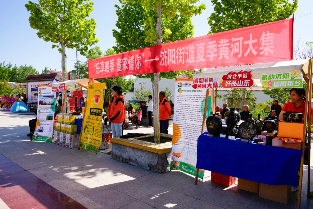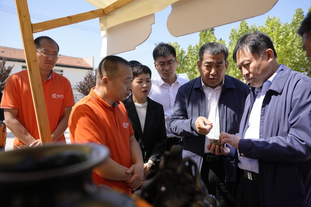 非遺展臺(tái)集中呈現(xiàn)黑陶制作、彩塑、烙畫(huà)、木版年畫(huà)等文化遺產(chǎn),領(lǐng)導(dǎo)們通過(guò)非遺傳承人的講述,感受技藝背后的歷史積淀,鼓勵(lì)非遺項(xiàng)目走出深閨、走向市場(chǎng),融入現(xiàn)代生活,實(shí)現(xiàn)“雙創(chuàng)”發(fā)展。濟(jì)北手造展臺(tái)則匯聚黃河沿岸的民間手造精品,既有老粗布、鉤繡等傳統(tǒng)工藝,也有融入現(xiàn)代設(shè)計(jì)的黑陶文創(chuàng)產(chǎn)品,凸顯匠心與創(chuàng)新的結(jié)合。此外,還有以長(zhǎng)田樂(lè)享超鮮蛋、烏棗、小磨香油、永慶昌熟食、肖家酥火燒等在地食材為亮點(diǎn),展示了濟(jì)陽(yáng)“北緯37度黃金農(nóng)業(yè)帶”的優(yōu)質(zhì)農(nóng)產(chǎn)品,成為鄉(xiāng)村振興的特色名片?;顒?dòng)通過(guò)場(chǎng)景化體驗(yàn)與資源整合,進(jìn)一步塑造了濟(jì)陽(yáng)文旅品牌,推動(dòng)區(qū)域高質(zhì)量發(fā)展。